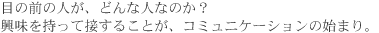 | 人は必ず、誰かと話します。何気ない普段の会話でも、ほっとした気持ちになったり、明日も頑張ろうという気持ちになります。コーチングは、そんな日頃の会話にちょっと加える調味料です。相手を変えたいと願うより、自分が少しだけ |